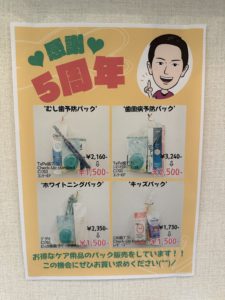 そこで日頃の感謝を込めて、5周年記念キャンペーンを5〜6月まで行います☆(数に限りがございます)